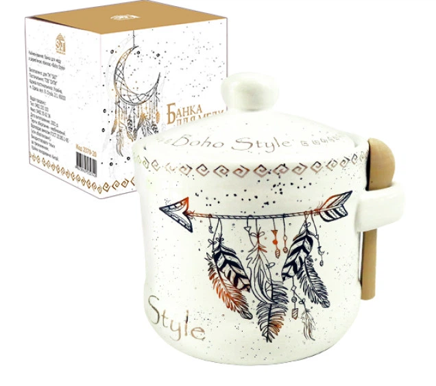 Банка S&T для меду Бохо 400мл кераміка сірий 2370-20