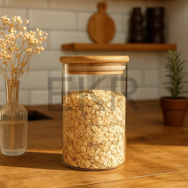 Ємність 1100 мл, для сипких продуктів 10х15 см із бамбуковою кришкою R29786