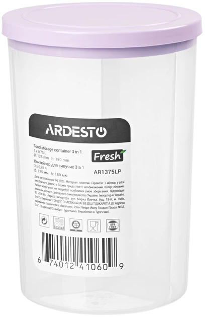 Контейнер для зберігання харчових продуктів 3 в 1 Ardesto Fresh, 3х0.75л, пластик, ліловий