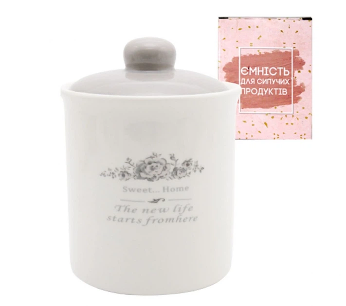 Банка керамічна 550мл з бамбуковою кришкою Tea Time, колір - білий із золотом