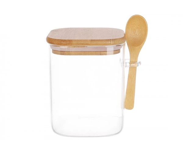 Банка для зберігання з боросилікатного скла з бамбуковою кришкою та ложкою,10*10*13см