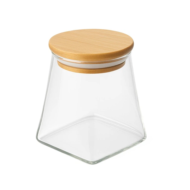 Скляна банка з бамбуковою кришкою, 600 мл (Конус)