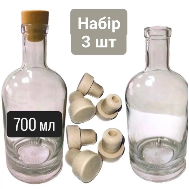 Скляні пляшки Хлоя 700 мл із моноблок Т-пробкою 22,5 мм, набір 3 штуки