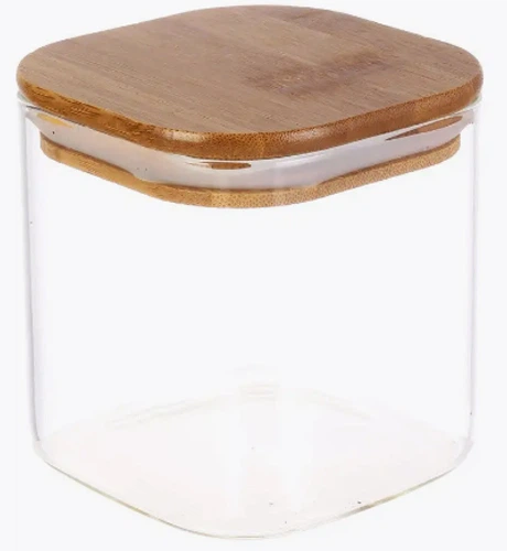 Ємність для сипучих продуктів скляна кругла з бамбуковою кришкою 20см