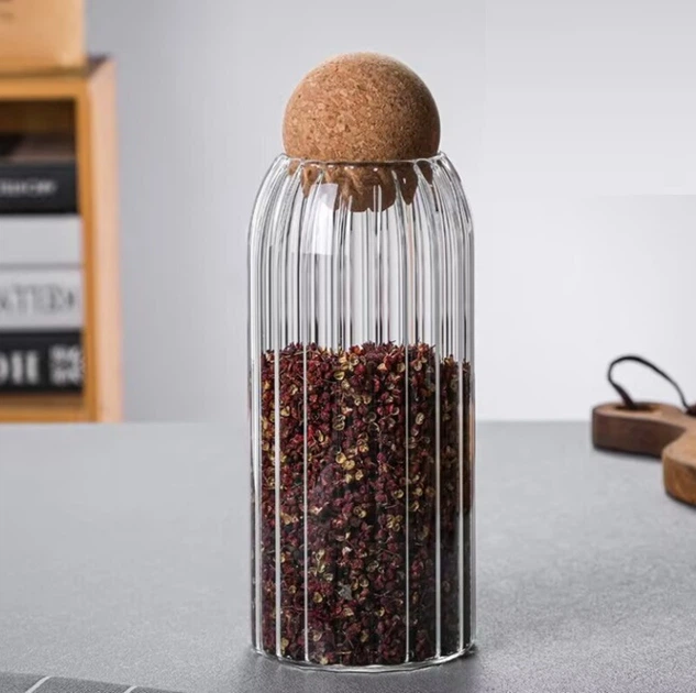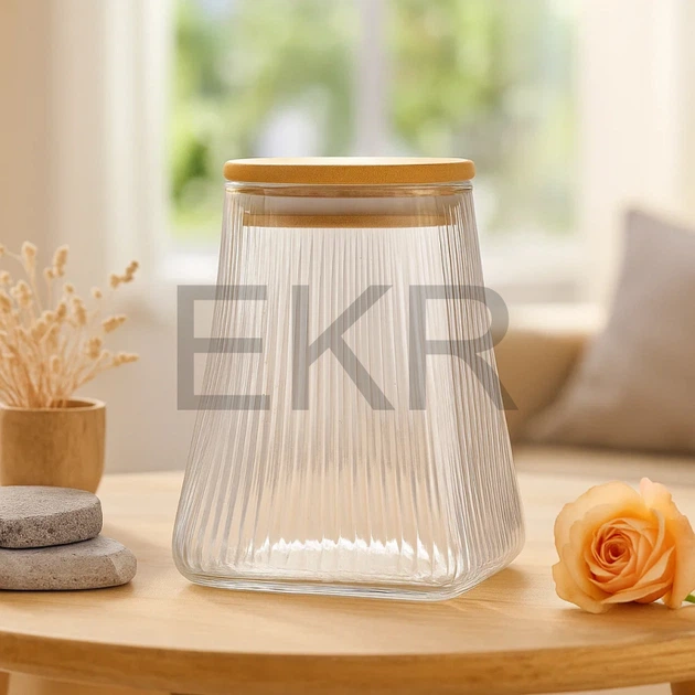 Скляна конусна банку 750мл Ребриста з бамбуковою кришкою Прозорий (992-229)