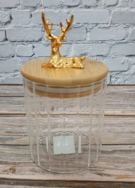Банка з бамбуковою кришкою Stenson R92808 скляна 1150 мл 10х15 см Прозорий (R10871-15)