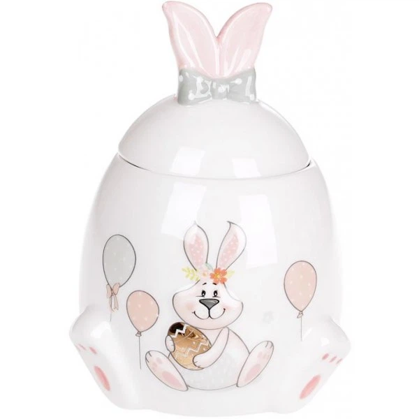 Банка керамічна "Веселий кролик з квітами" 450мл з об'ємним малюнком (109064)
