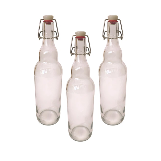 Пляшка Бугельна, скляна (прозора) 1 л. з бугельною пробкою 3шт.