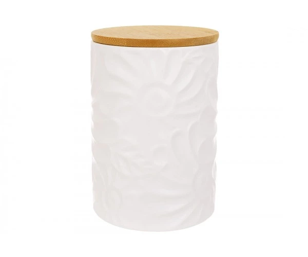 Банка керамічна Квітка 700мл з бамбуковою кришкою, колір-матовий білий