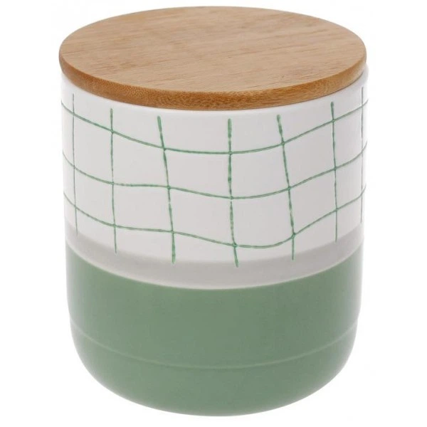 Банку фарфору "Клітка" для сипучих продуктів 900мл з дерев'яною кришкою, білий з м'ятним (109105)