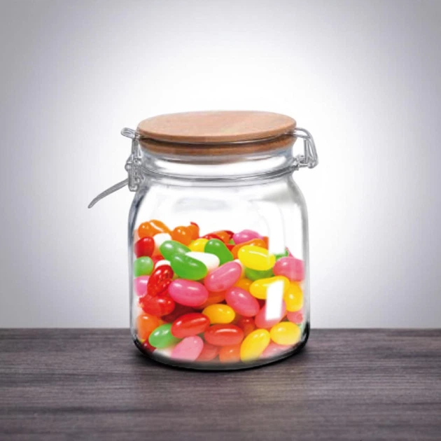 Скляна банка 1,2 л для зберігання сипучих продуктів, із затискачем та бамбуковою кришкою OAN12