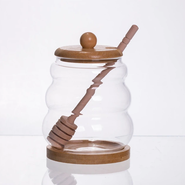 Медовниця скляна з кришкою і ложкою 350 (мл)