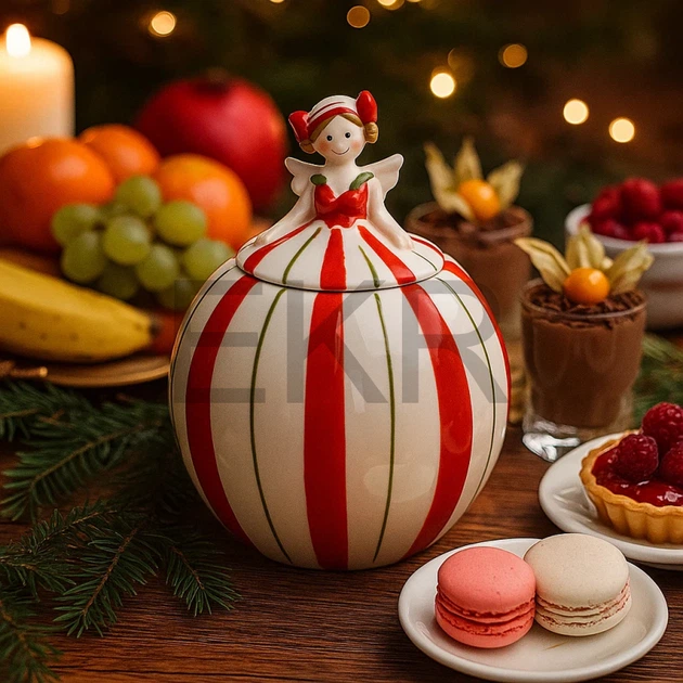 Керамічна банка “Ангел” 290 мл – біло-червона, із кришкою (834-428)