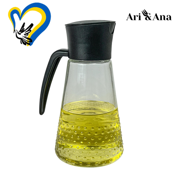 Скляна пляшка для олії Ari&Ana 630 мл з дозатором, ємність для масла, чорна
