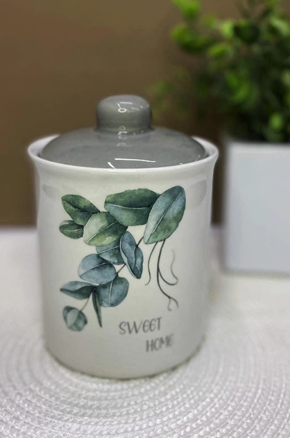 Банка Sweet Home біла керамічна з кришкою 700 мл для сипучих продуктів Флора