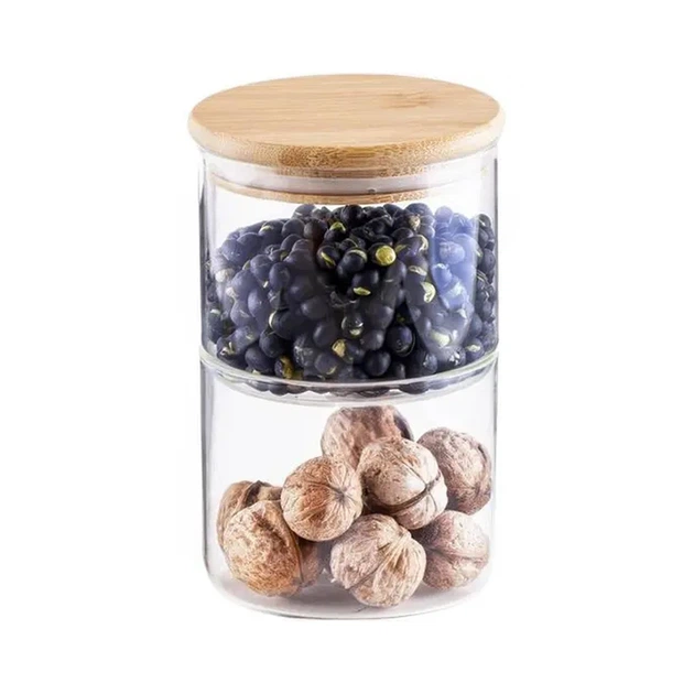 Набір скляних банок 2500 мл з бамбуковими кришками для зберігання кави, чаю, спецій, круп, цукру, горіхів