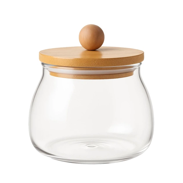 Квадратна скляна банка 0.6 л з дерев'яною ложкою з бамбуковою кришкою
