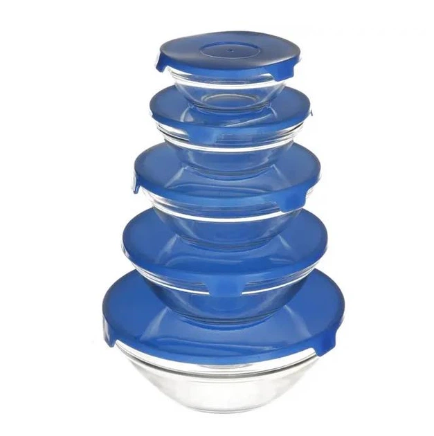 Набір скляних ємностей для зберігання з блакитними кришками 5 шт A-Plus 0120