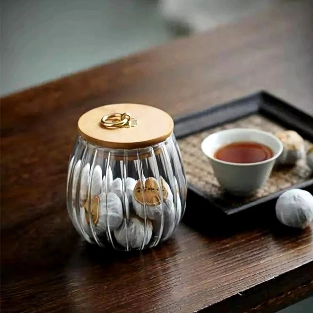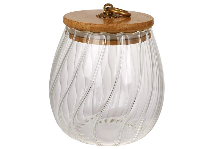 Скляна кругла банка з бамбуковою кришкою 750 мл та з кільцем на кришці Wave