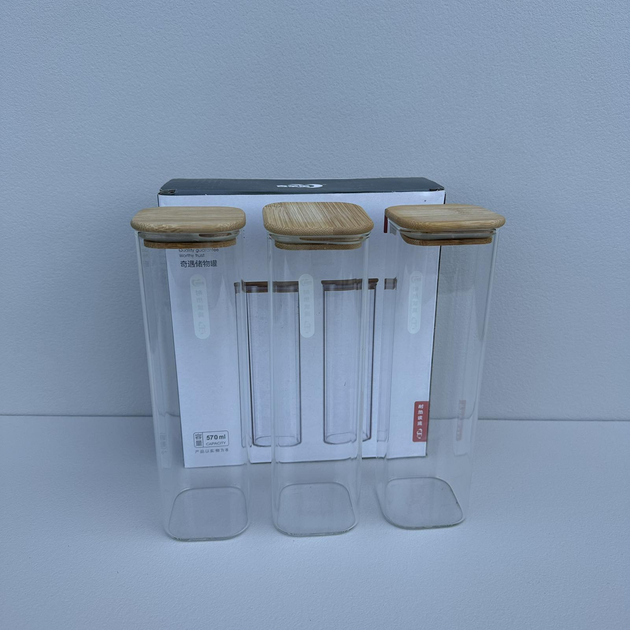 Набір банок для сипучих з бамбуковими кришками 3 шт 570 мл A-PLUS GPG 302-51/0195