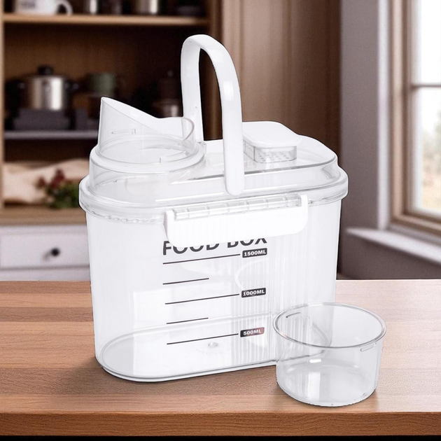 Контейнер для зберігання сипучих продуктів пластиковий 2 літри 20х11х22 см з дозатором і мірною шкалою ємність для круп об'є