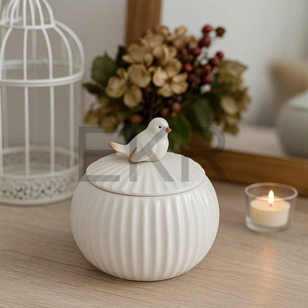 Банку фарфору 500мл, з фігурною пташкою Білий глянець (727-397)