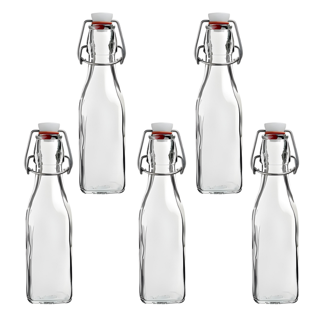 Пляшка Квадратна Бугельна, скляна (прозора) 0,5 л. з горбильним корком 5 шт.