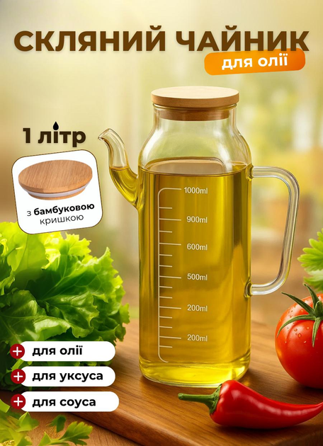 Чайник для олії та оцту з бамбуковою кришкою 1 літр Yiwu HP-34-2 ємність для оливкової, соняшникової олії