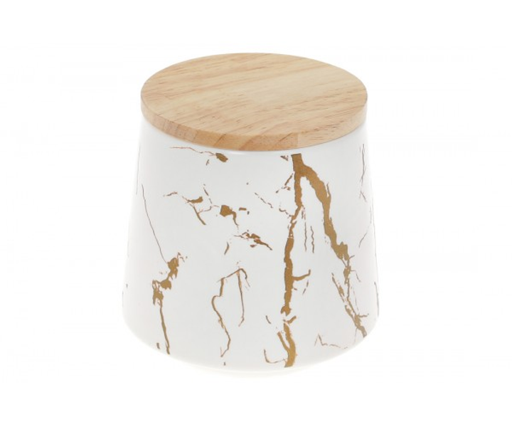 Банка порцелянова 520мл з бамбуковою кришкою Мармурова розкіш, Колір-білий з золотом
