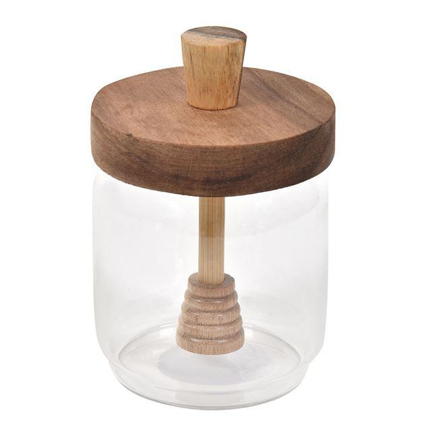 Банка для меду Yiwu 64486-7 медовниця скляна з кришкою на бамбуковій підставці 500 мл Прозорий