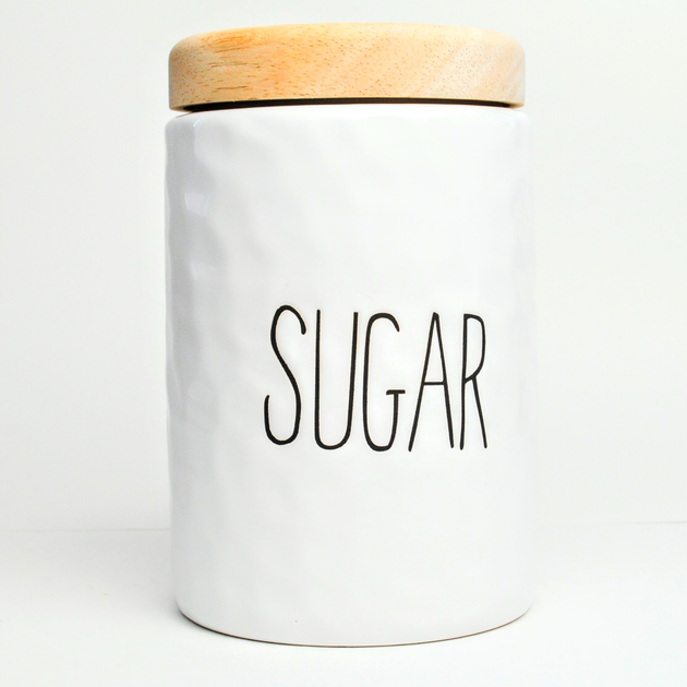 Банка для цукру BonaDi Bianco 1,2 л керамічна з бамбуковою кришкою, біла