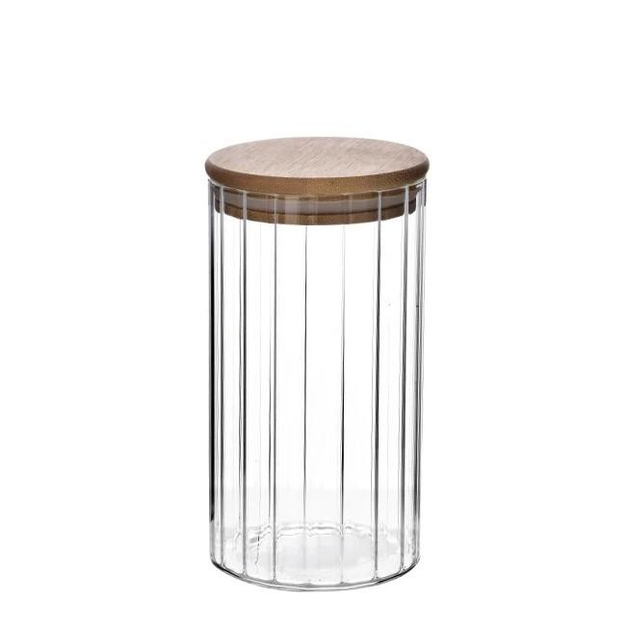 Ємність 950мл сіра керамічна з дерев'яною кришкою 1324
