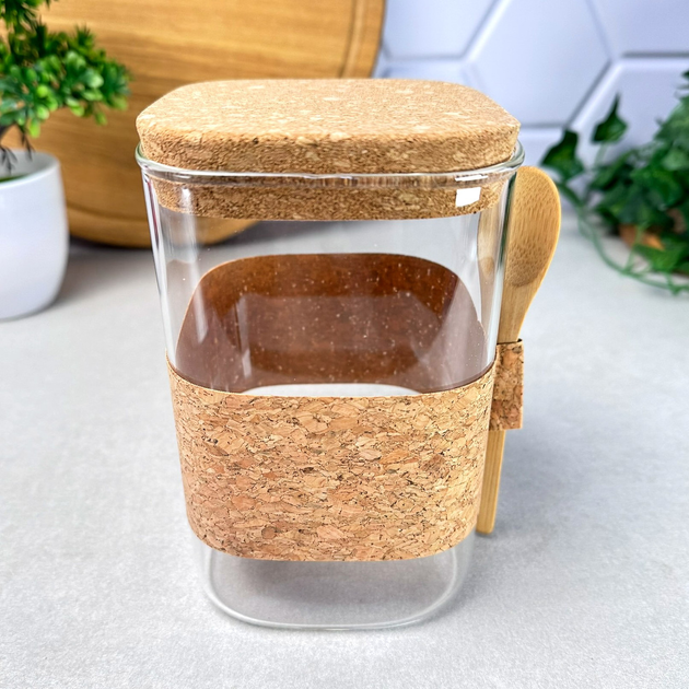 Квадратна банка 1200 мл із корковою кришкою та ложкою