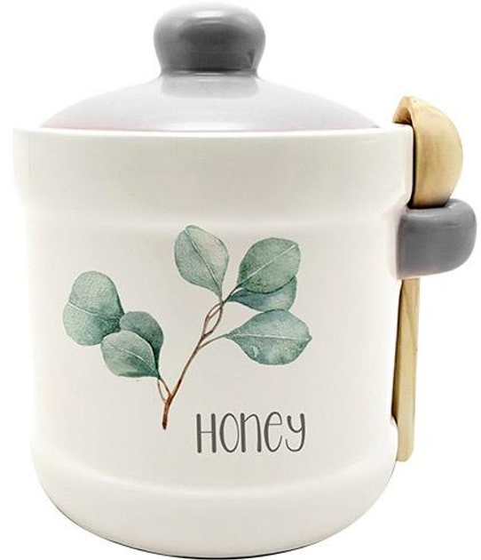 Керамічна банка-медовниця з дерев'яною ложкою Флора 450мл (ST-700-04-16)