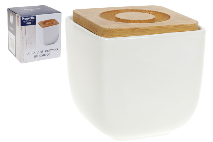 Банку фарфорова для сипучих продуктів 400 мл з бамбуковою кришкою Naturel BonaDi 375-371
