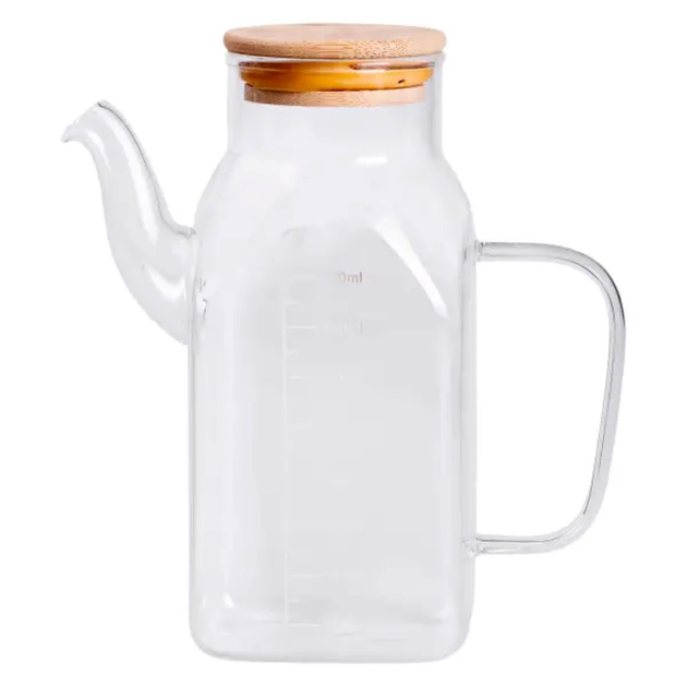 Ємність для олії та оцту з бамбуковою кришкою 750 мл скляний чайник для оливкової, соняшникової олії