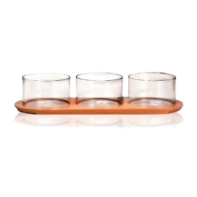 Набір ємностей S@T на стійці 4 предмети 340 мл 33,5х11,5 см скло + бамбук (7089-1)