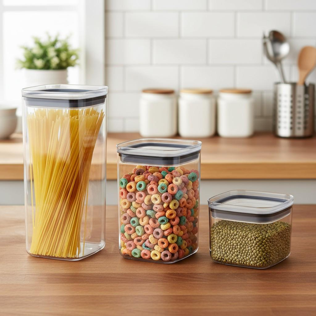 Комплект із 3 шт ємностей для сипучих продуктів, пластикові 0,7 л, 1,4 л і 2,1 л, Прозорий (040-GRAY)