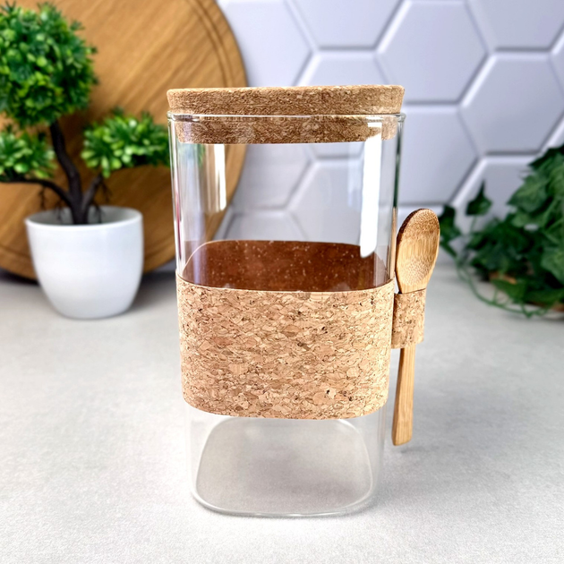 Квадратна банка 1500 мл із корковою кришкою та ложкою