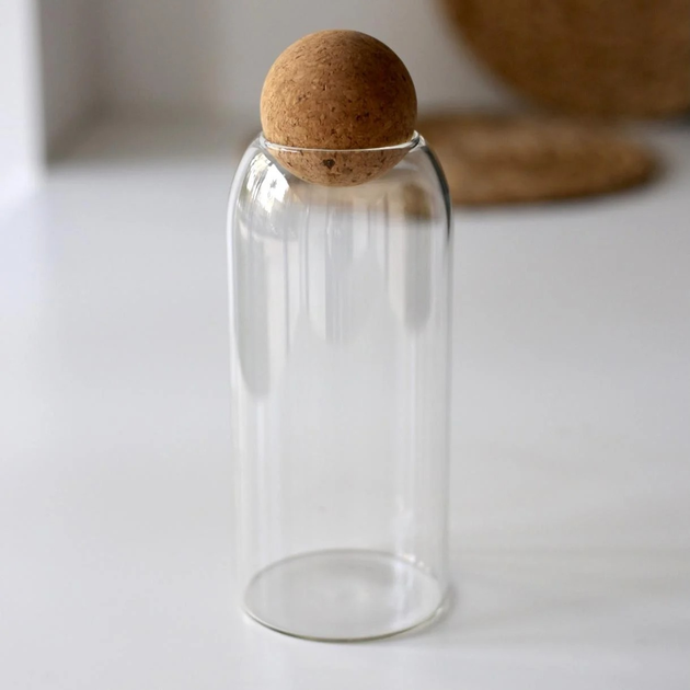 Висока скляна банка 1.6 л з корковою кришкою-кулею