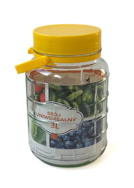 Пляшка скляна 3 л з пластиковою кришкою та гідрозатвором для зберігання продуктів та напоїв