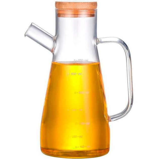 Ємність для олії та оцту з бамбуковою кришкою 750 мл скляний чайник для оливкової, соняшникової олії HP-34-1