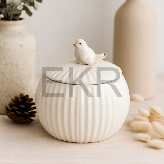 Банку фарфору 750мл, з фігурною пташкою Білий глянець (727-394)