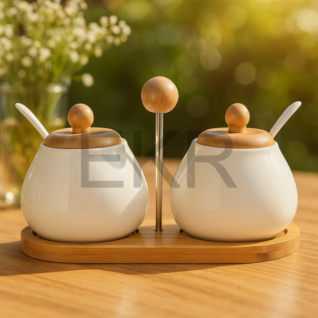 Набір ємностей на бамбуковій підставці два предмети PJ02197