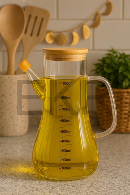 Скляна пляшка-диспенсер для олії 1 л із бамбуковою кришкою