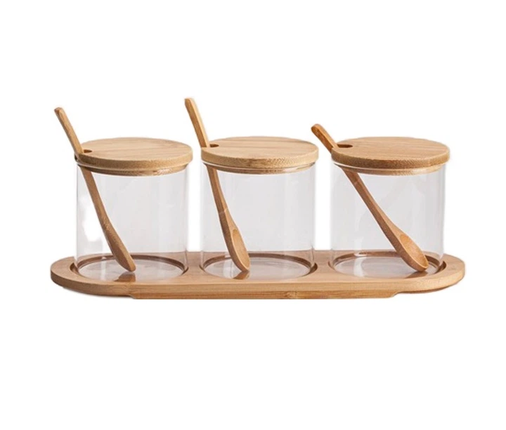 Набір банок Viva Bamboo з ложками на підставці 3 х 350 мл