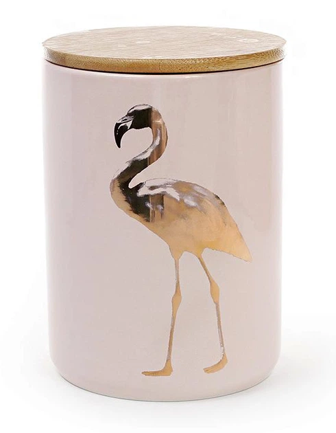 Банка Фарфорова Фламінго 1225мл з бамбуковою кришкою, рожева
