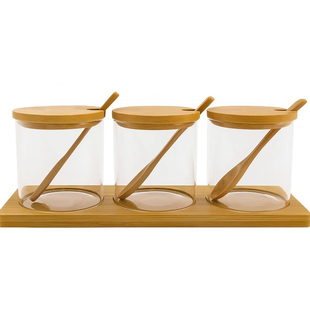 Набір скляних банок для сипучих 300мл Classic (3шт, на дерев'яній підставці)