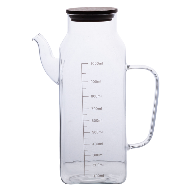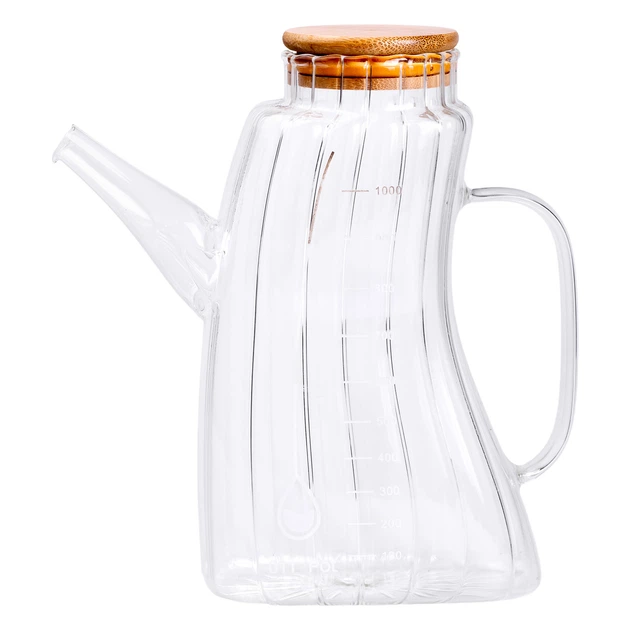 Скляна пляшка для олії 1 л HP-34-3 з ручкою та бамбуковою кришкою HP-34-3