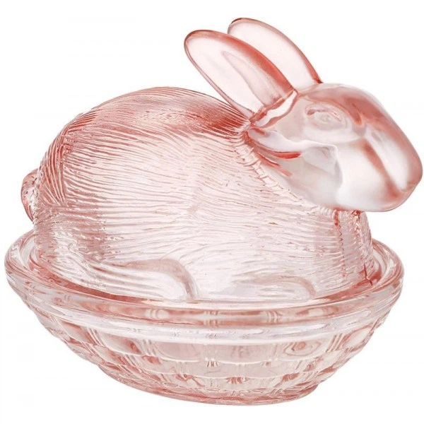 Скляна ємність з кришкою "Кролик" для солодощів, 14х10х11см, рожеве скло (244776)
